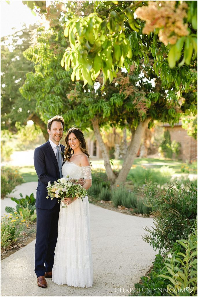 Flora Farms is one of our favorite venues in Los Cabos. While most Mexico destination weddings take place on the oceanfront, this intimate location is perfect for a rustic and relaxed romantic wedding! The farm setting has a mango orchard, sunflower fields, a red-brick barn, and the most incredible menu made with local organic fruits and veggies. We love this old tree and the sinewy shape of its trunk and branches. It was the perfect location for the couple’s first look before the ceremony as the sun streamed in behind them.